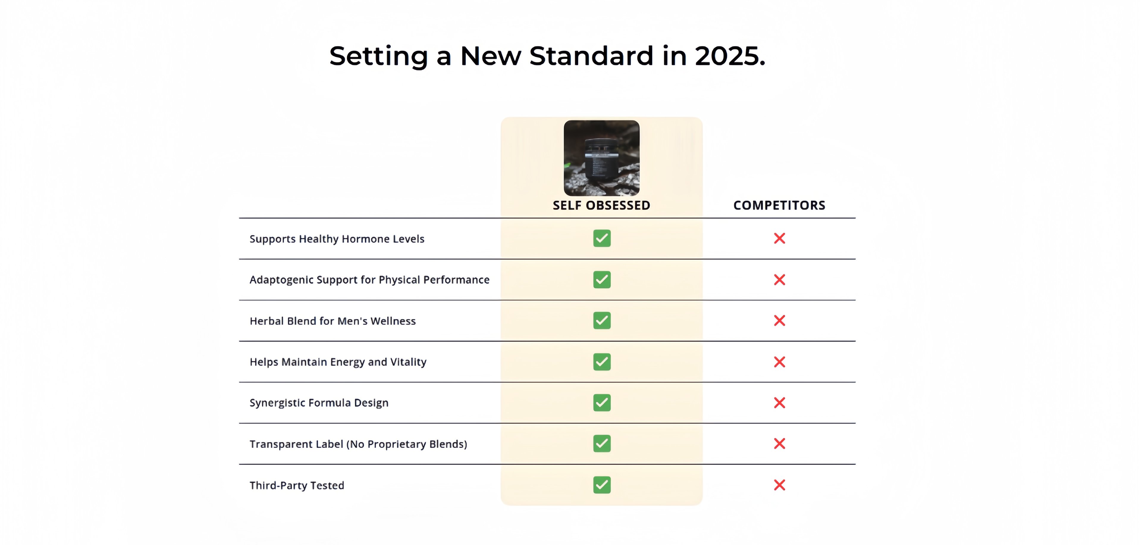 SELF OBSESSED is designed for men looking to optimize testosterone levels, enhance physical performance, support vitality, and reclaim their edge — both in and out of the gym. Whether you're pushing through plateaus, struggling with low energy, or simply want to feel sharper, stronger, and more driven, this is built for you.